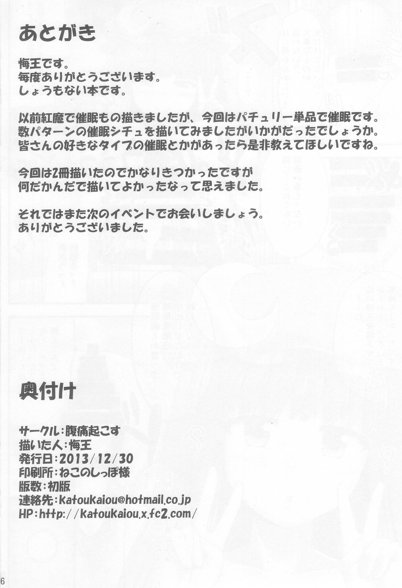 催眠レイプ パチュリー・ノーレッジ
